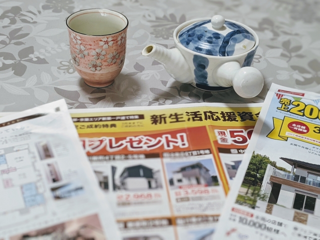 自社で開発販売する商品(家)を販売するために紙でつくられている広告。スマホやパソコンの普及で、そのチラシは大小の「画面」に変わった。特徴は、①きれい②パッパッとスクロール③情報が満載④見比べるには慣れが必要⑤販売価格の競争。一歩踏み込んで、⑥販売価格には住宅本体価格とオプションを明示⑦「限定」「特別仕様」「特典」での誘い⑧「相談会」「見学会」「フェア」「キャンペーン」等で行動の誘い⑨「家賃並み」で興味をひく。